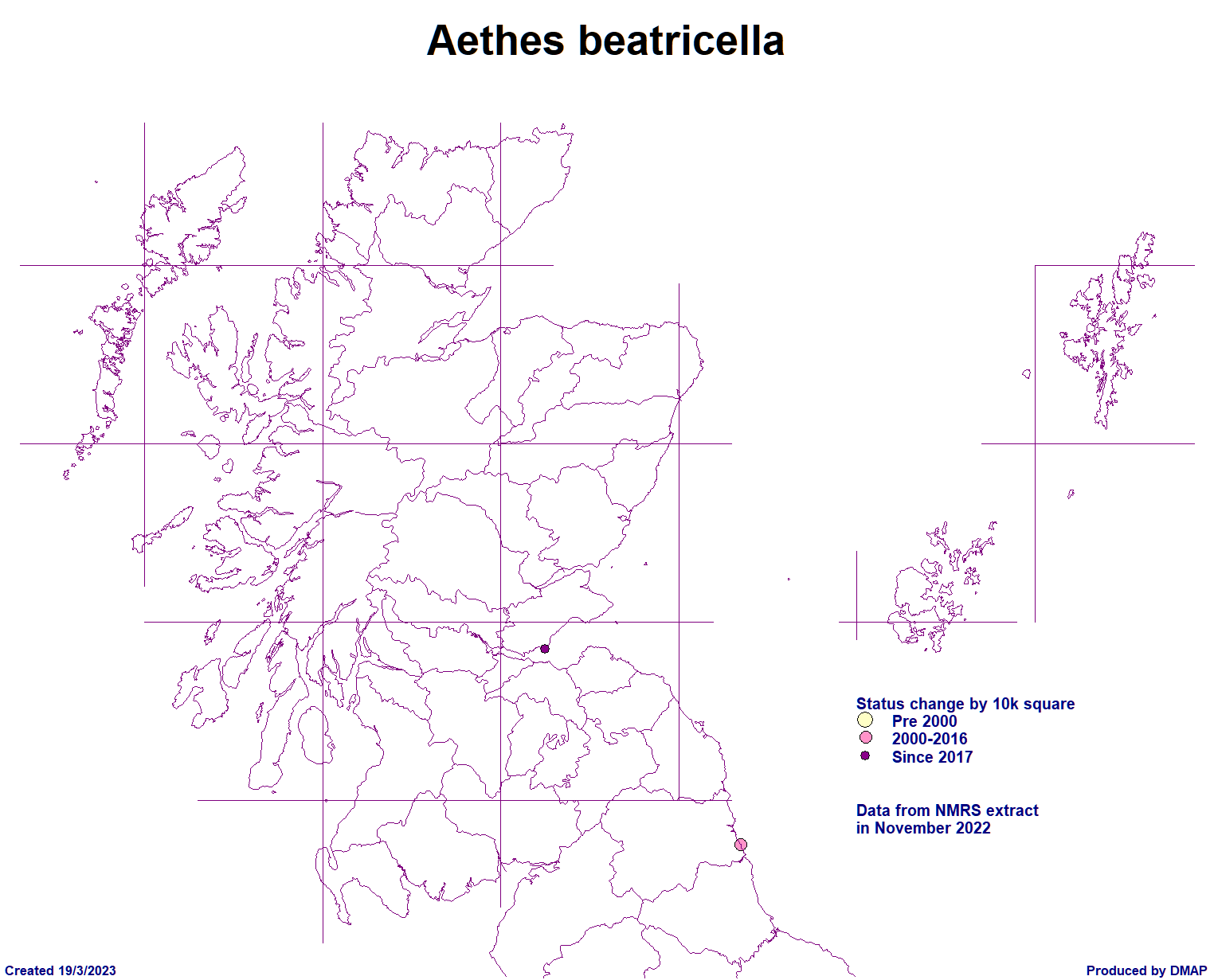 The table on this page lists the micro moths of the family shown that have been recorded in Scotland. The maps show, at a vice county level, where each species has been recorded.