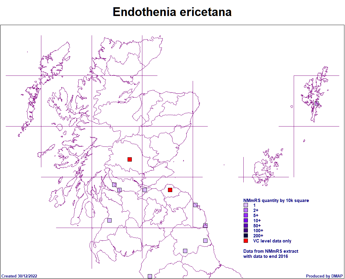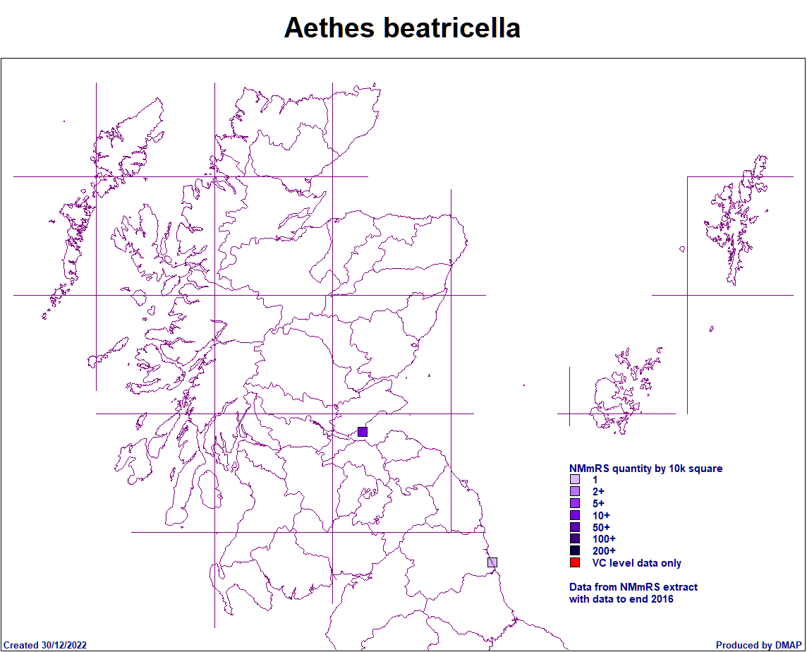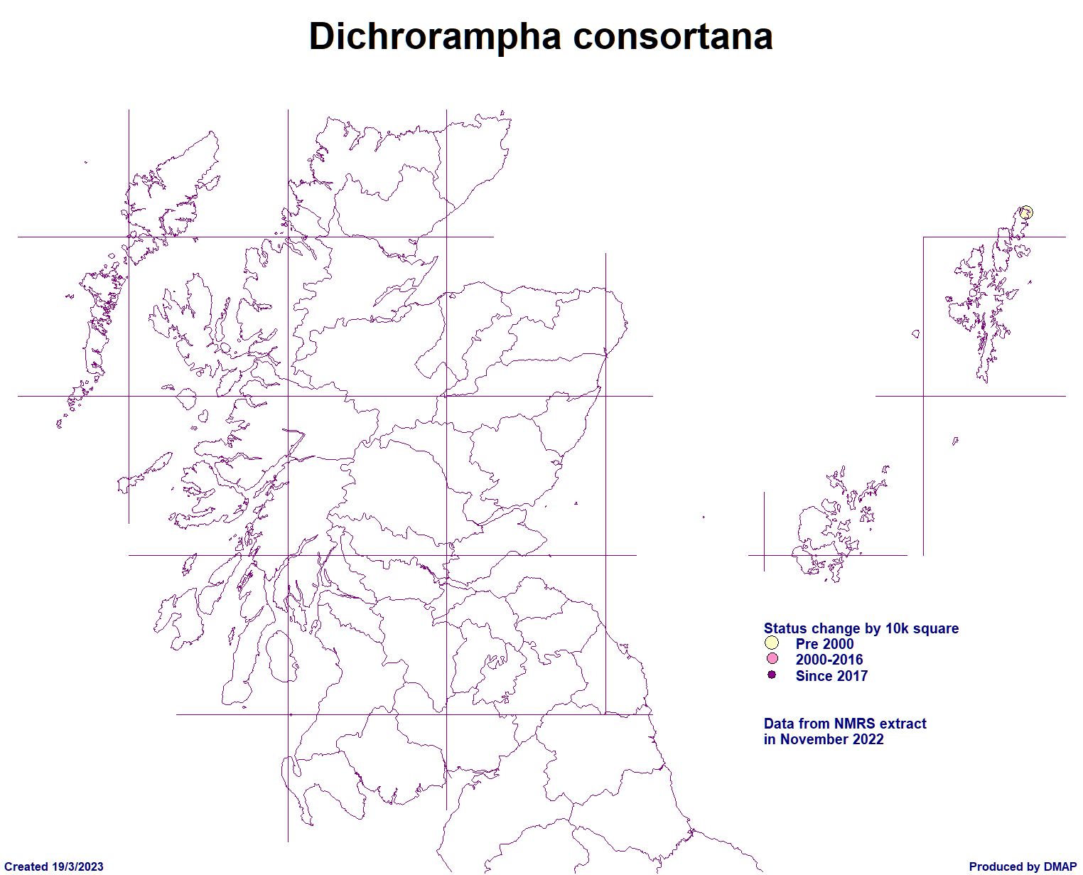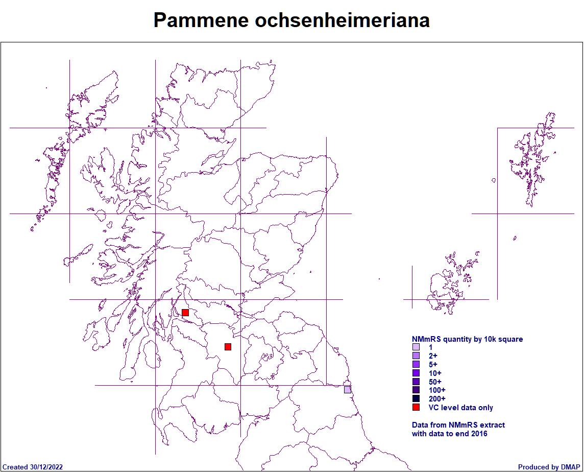 The table on this page lists the micro moths of the family shown that have been recorded in Scotland. The maps show, at a vice county level, where each species has been recorded.