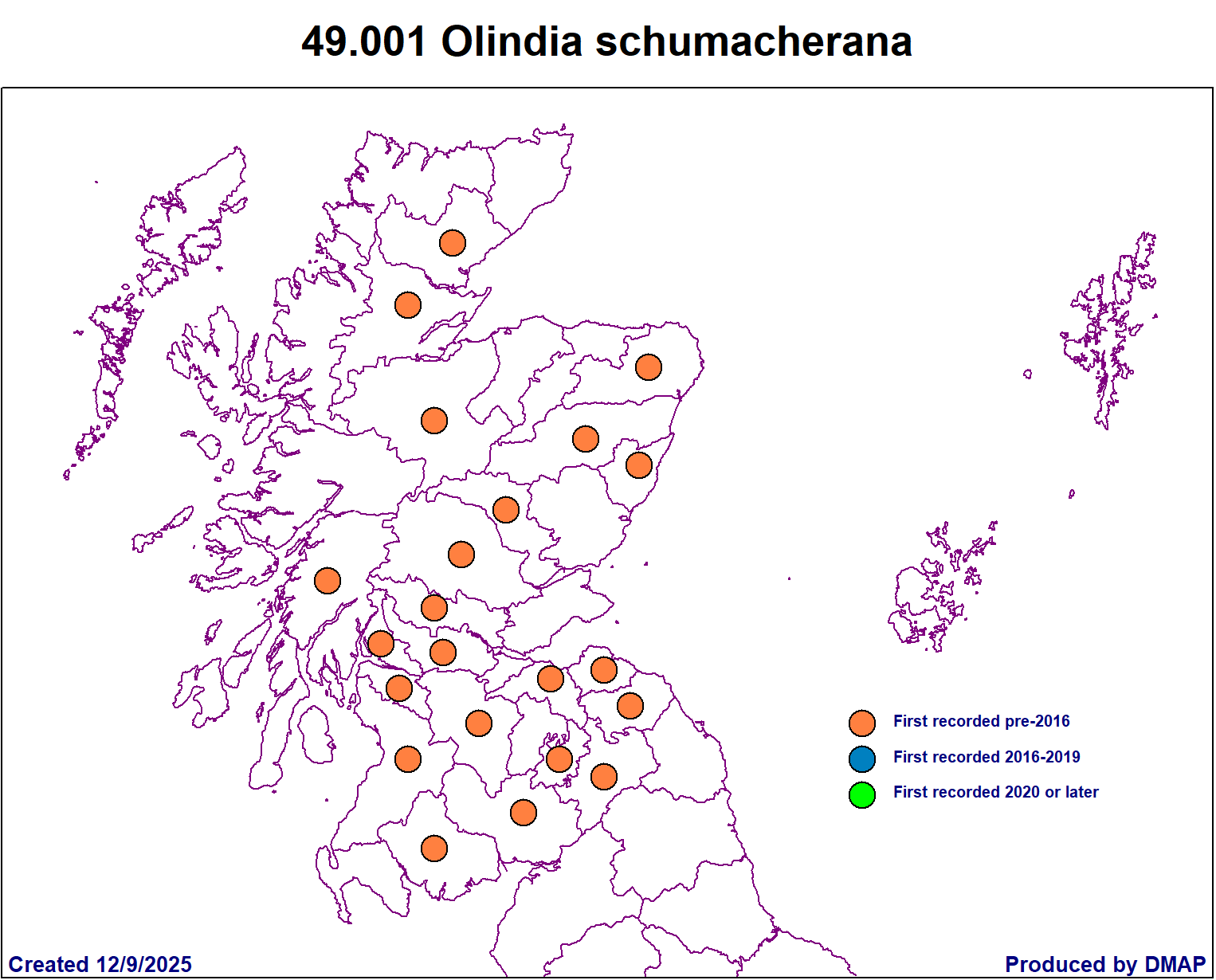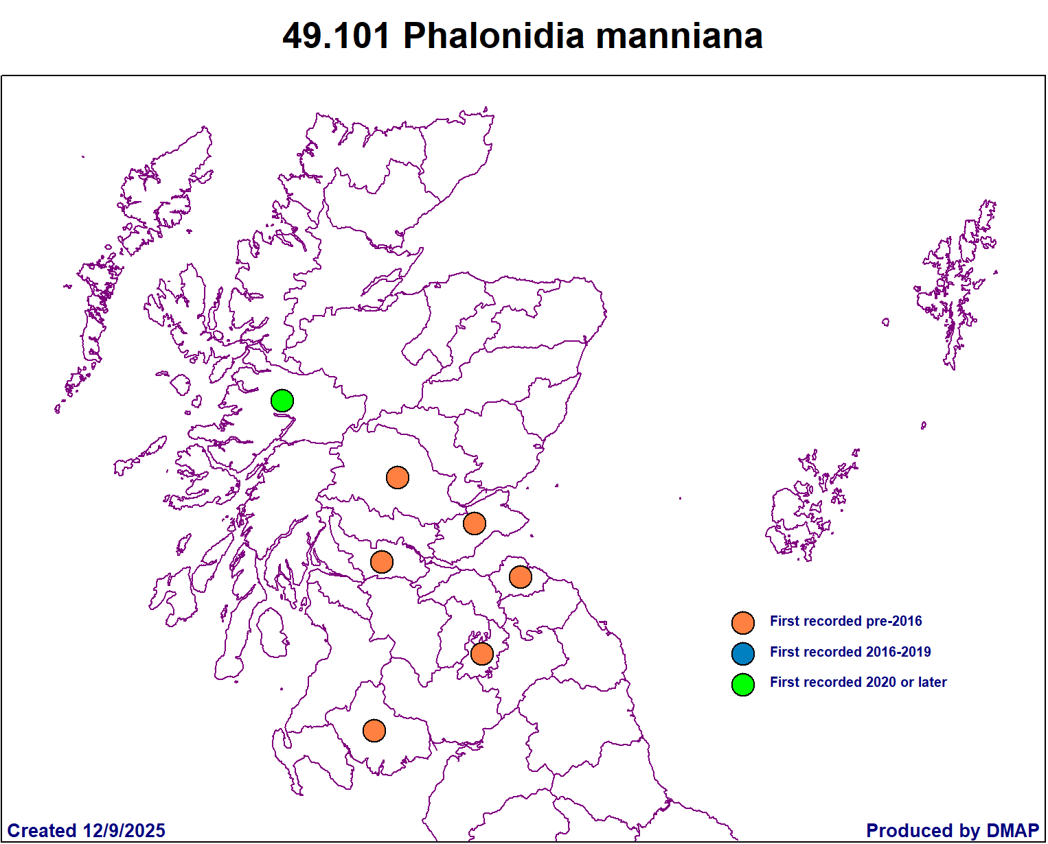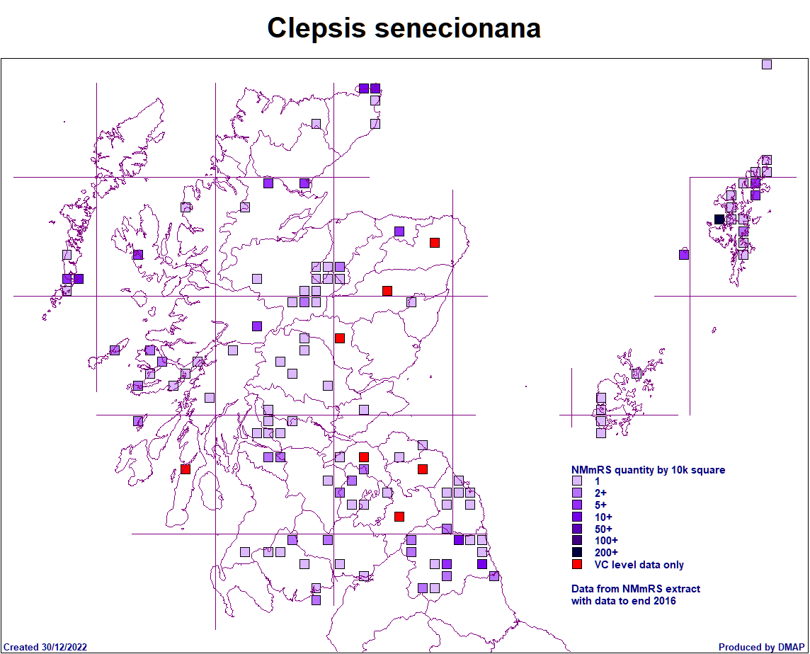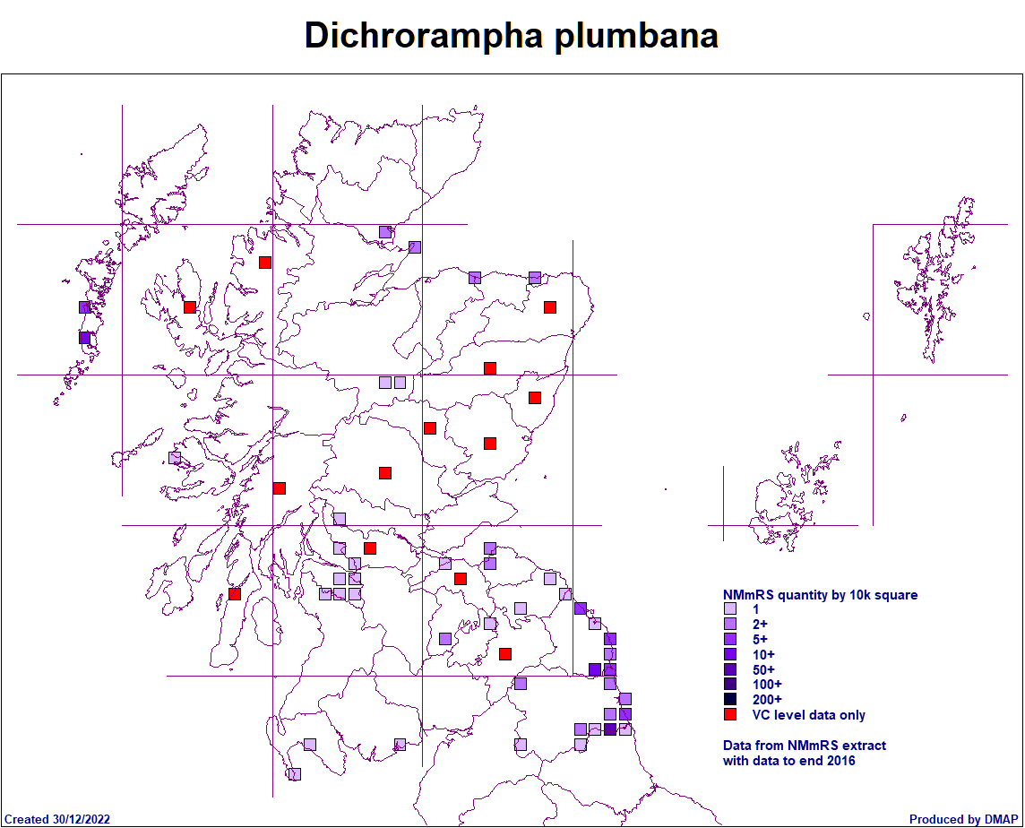 The table on this page lists the micro moths of the family shown that have been recorded in Scotland. The maps show, at a vice county level, where each species has been recorded.