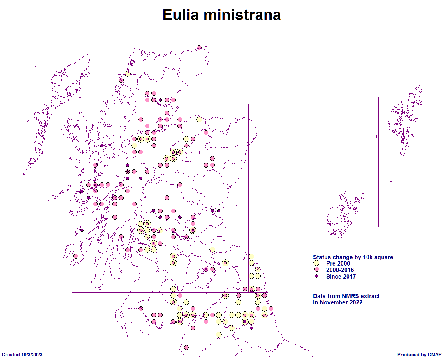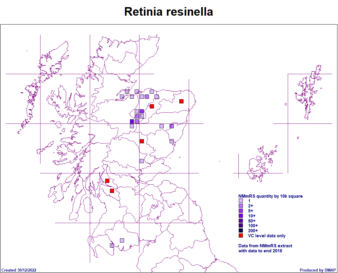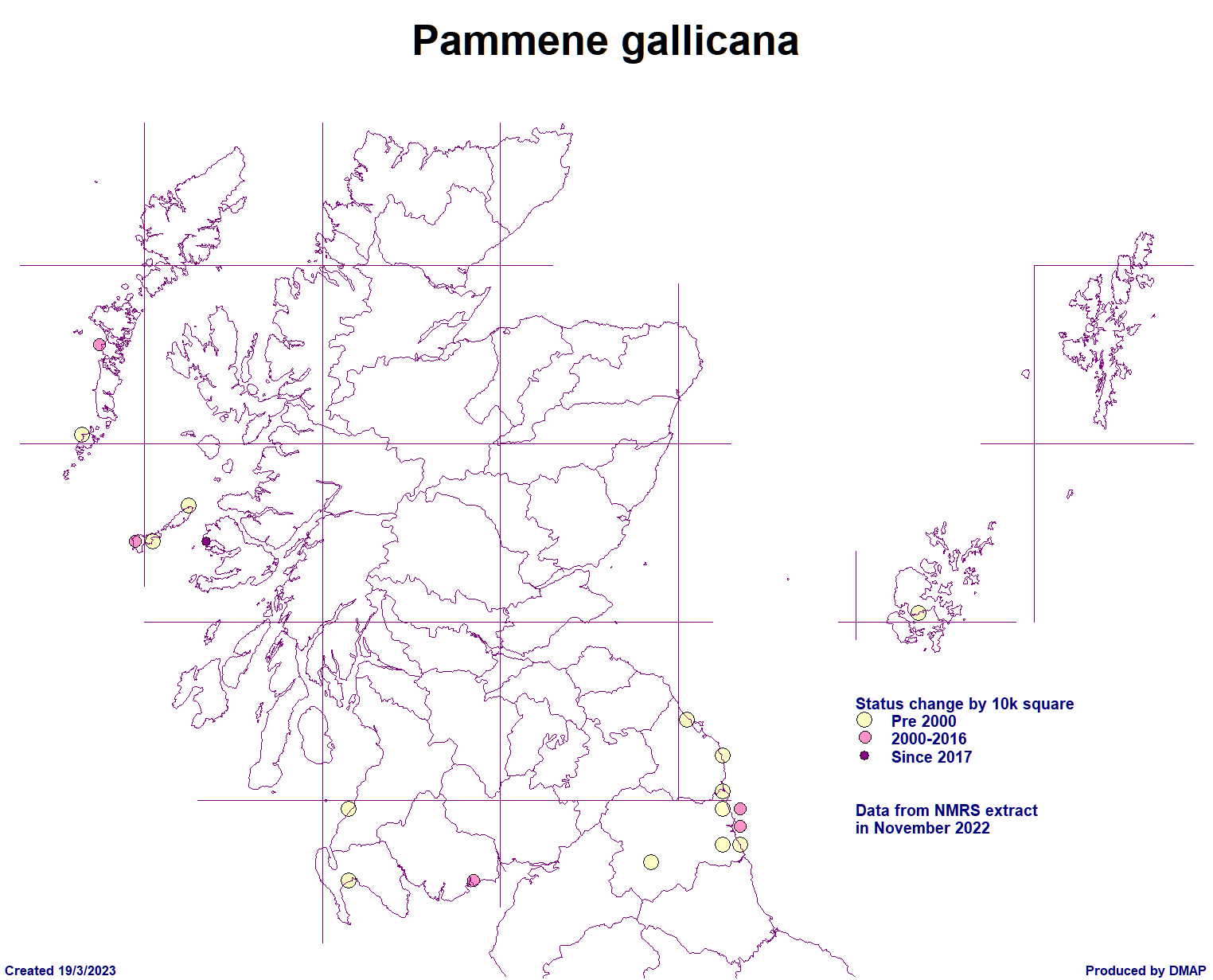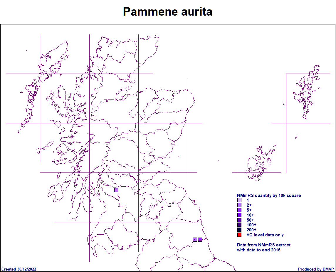 The table on this page lists the micro moths of the family shown that have been recorded in Scotland. The maps show, at a vice county level, where each species has been recorded.
