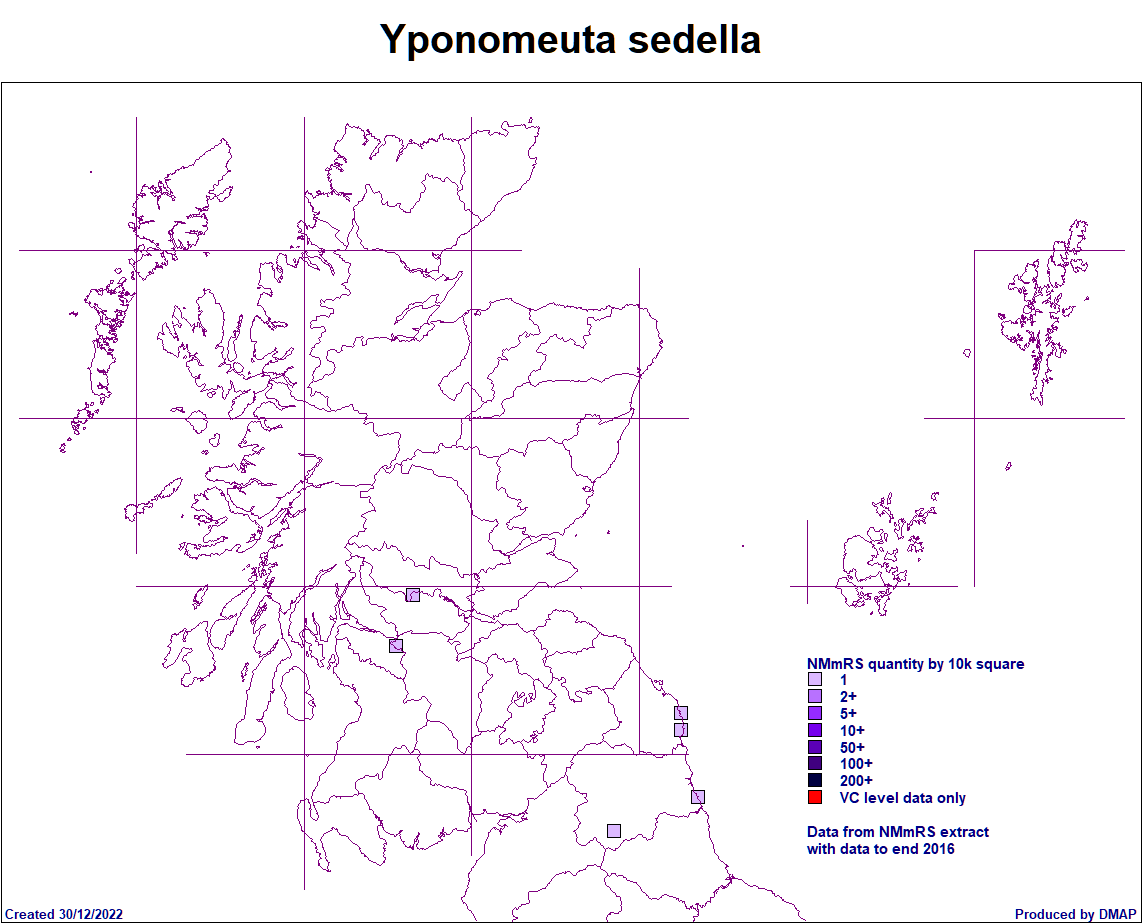 The table on this page lists the micro moths of the family shown that have been recorded in Scotland. The maps show, at a vice county level, where each species has been recorded.